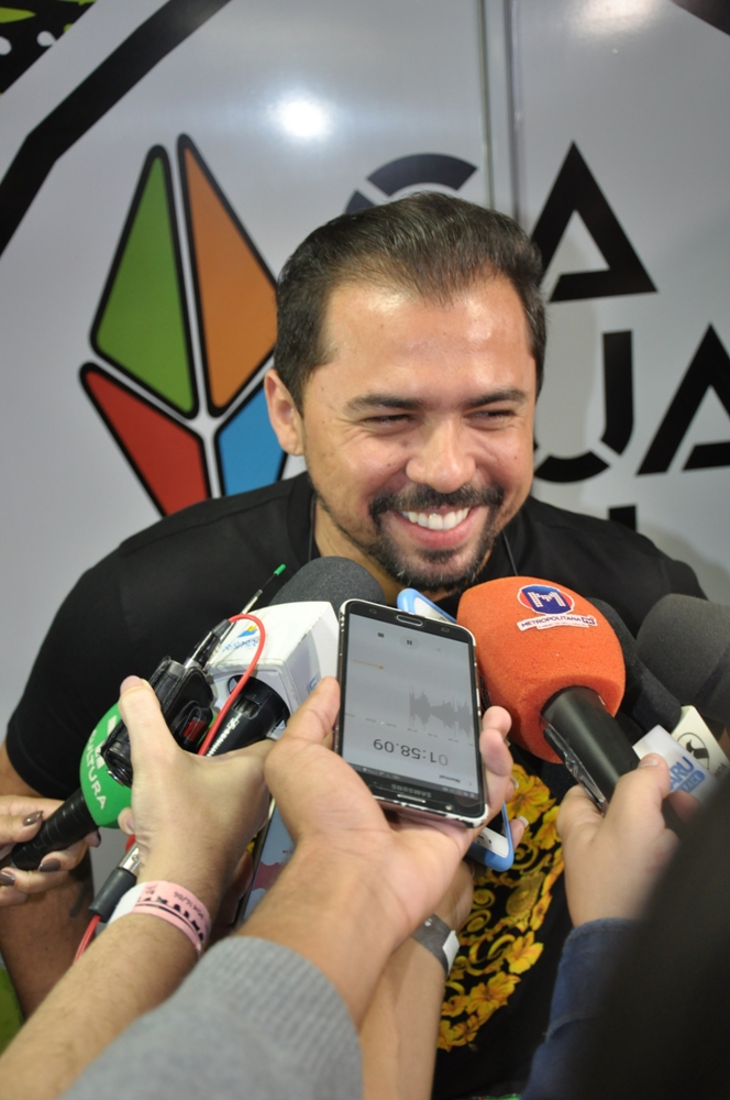 O cantor Xand entrou na sala de imprensa apenas para dar um pronunciamento, mas o carisma do vocalista não impediu a interação com a imprensa. Xand chegou comemorando e dizendo que se sente muito feliz em estar pisando no Pátio do Forró pela 11ª vez.