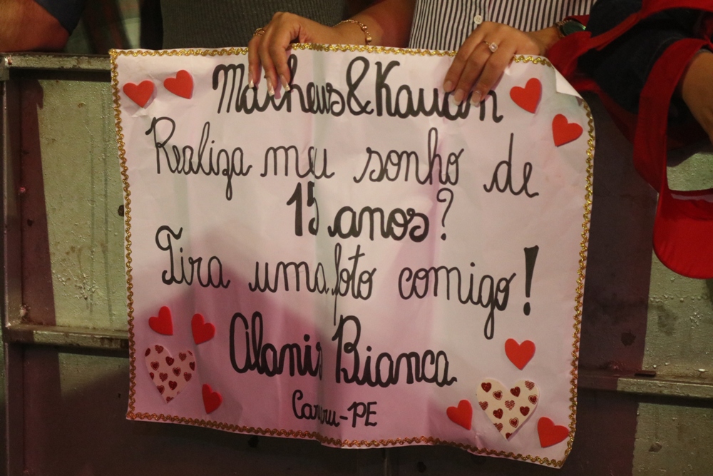 Parecia que todo o Pátio do Forró estava aguardando pelo show de Matheus e Kauan, terceira atração deste domingo. Isso porque a dupla foi acompanhada o tempo todo pelo público, que cantou todas as músicas do repertório.