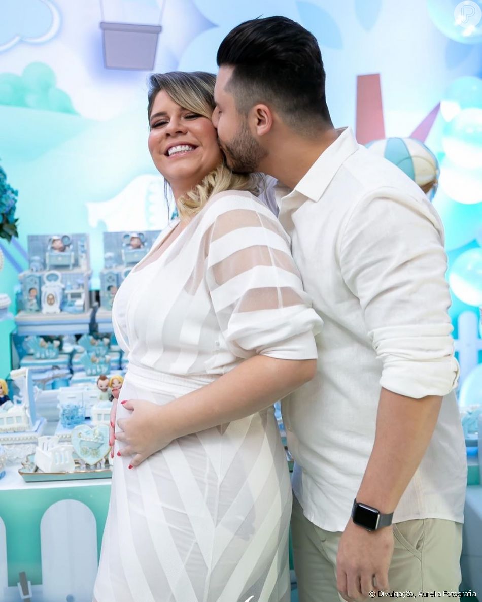 Marília completou 24 anos de idade na segunda-feira (22). No meio da comemoração, a cantora também ficou sabendo o sexo do primeiro filho, através de um chá revelação.