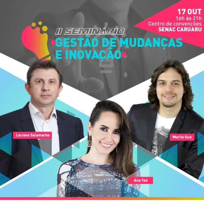 Nesta quinta-feira (17), a partir das 15h30, o Senac Caruaru recebe o Seminário Gestão de Mudanças e Inovação que a Federação das Indústrias do Estado de Pernambuco (FIEPE). O evento oferece para a região cinco horas de imersão em temas como marketing digital, criatividade e comportamento com três especialistas de renome nacional: Ana Tex, Murilo Gun e Luciano Salamacha. O case de sucesso da marca Jeep será apresentado pelo Plant Manager do Polo Automotivo Jeep, Pierluigi Astorino.