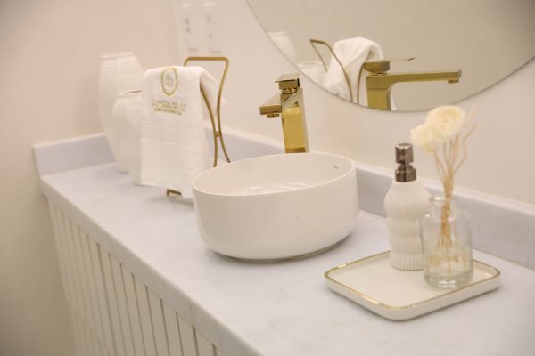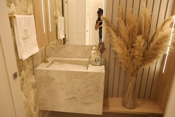 Inspirada nas origens de Samira, cujo pai é libanês, a clínica traz referências dessa cultura, como imponência e sofisticação. As arquitetas Mariana Vidigal e Carla Cristine, assinam o conceito do projeto. “Trabalhamos com a marca que aquela pessoa vai deixar no mundo. Cada cantinho da clínica tem o DNA de Samira. Nos inspiramos para a própria personalidade de Samira e foi refletido em todos os espaços. Nas cores, na fachada, nos ambientes”, pontua Carla.