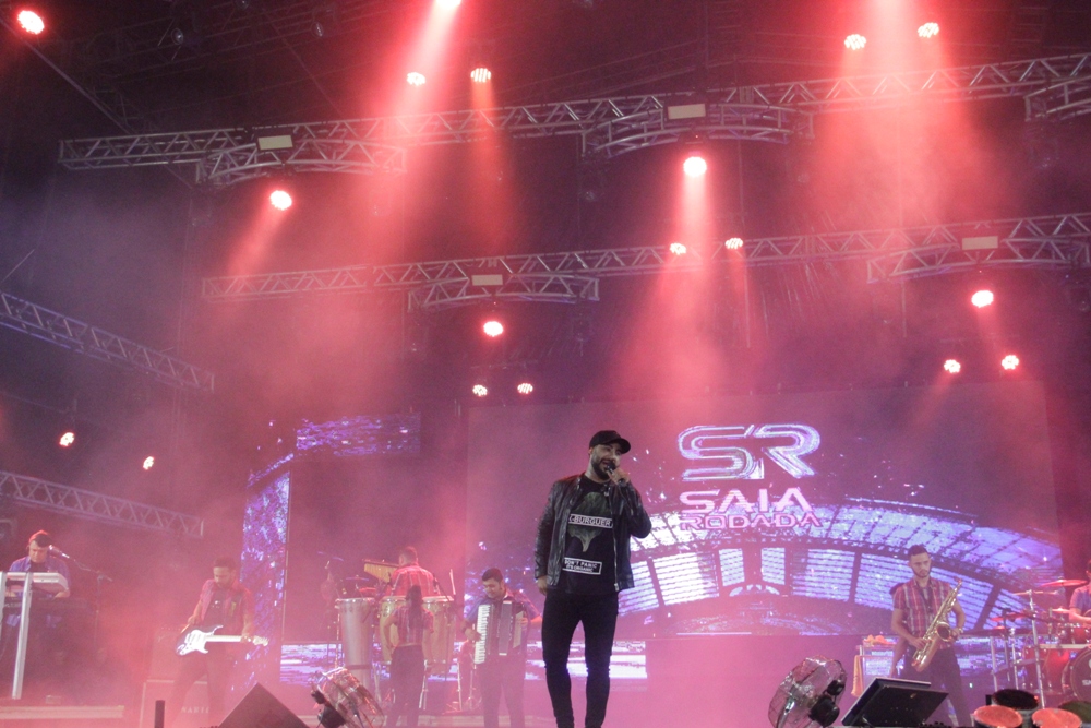 Uma das atrações mais esperadas da noite, a banda Saia Rodada, não deixou a desejar para as milhares de pessoas que resistiram à chuva e ao frio e vieram ao Pátio do Forró para prestigiar uma das maiores bandas de forró do momento.
