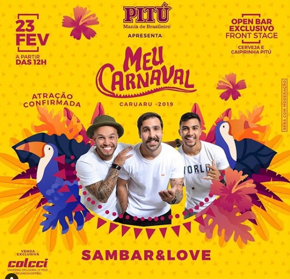 Mais uma atração foi confirmada para o “Meu Carnaval”, espaço que promete ser sucesso no dia 23 de fevereiro, na semana pré-carnavalesca de Caruaru. A banda Sambar e Love se junta a Cavaleiros do Forró na programação do espaço. O Meu Carnaval vai contar com áreas distintas para quem quiser aproveitar a folia com os amigos. Em um deles, o público vai contar com open bar de cerveja e caipirinha PITÚ.