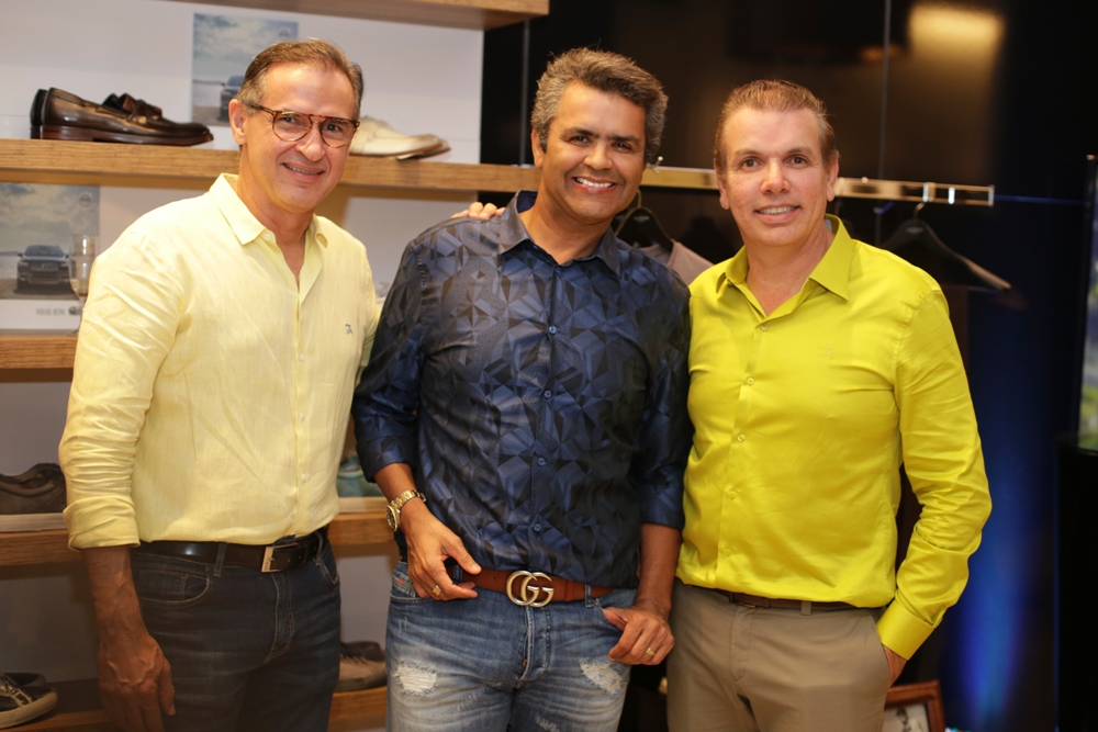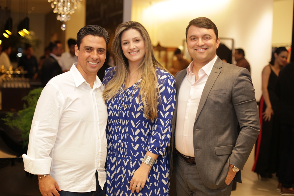 O casal Abelardo e Karol Vieira com o gerente Comercial da marca Ricardo Almeida, Clebio Maciel (Crédito: Cristiano Britto)
