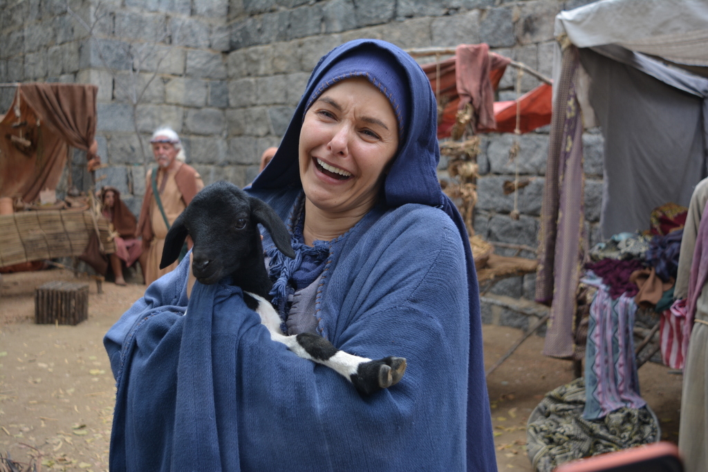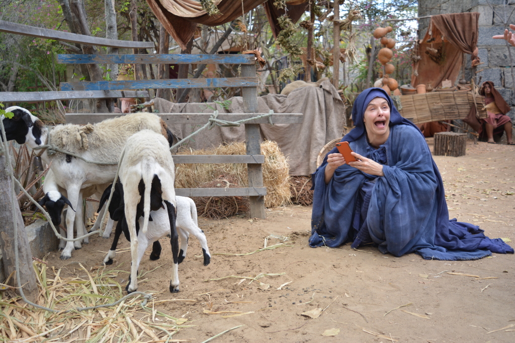 Já Bianca Rinaldi não segurou a emoção e foi às lágrimas durante as gravações. Entre uma pausa e outra, Bianca dá vida a Maria, mãe de Jesus. Feliz, a atriz não escondeu o prazer do novo trabalho e ao terminar sua primeira cena ela correu para brincar com as cabras. “Se minha filha estivesse aqui iria querer levar todas para casa”, disse aos risos enquanto carregava um filhote.
