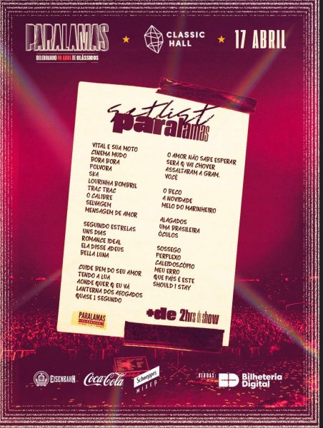 A banda Os Paralamas do Sucesso divulgou o repertório da turnê “Clássicos – 40 anos”, que chega ao Recife no dia 17 de abril, no Classic Hall. A apresentação promete mais de duas horas de música, reunindo sucessos que marcaram diferentes fases da carreira do grupo e se consolidaram como clássicos do rock brasileiro. Os últimos ingressos estão disponíveis online, no site da Bilheteria Digital, e também presencialmente na bilheteria do Classic Hall.