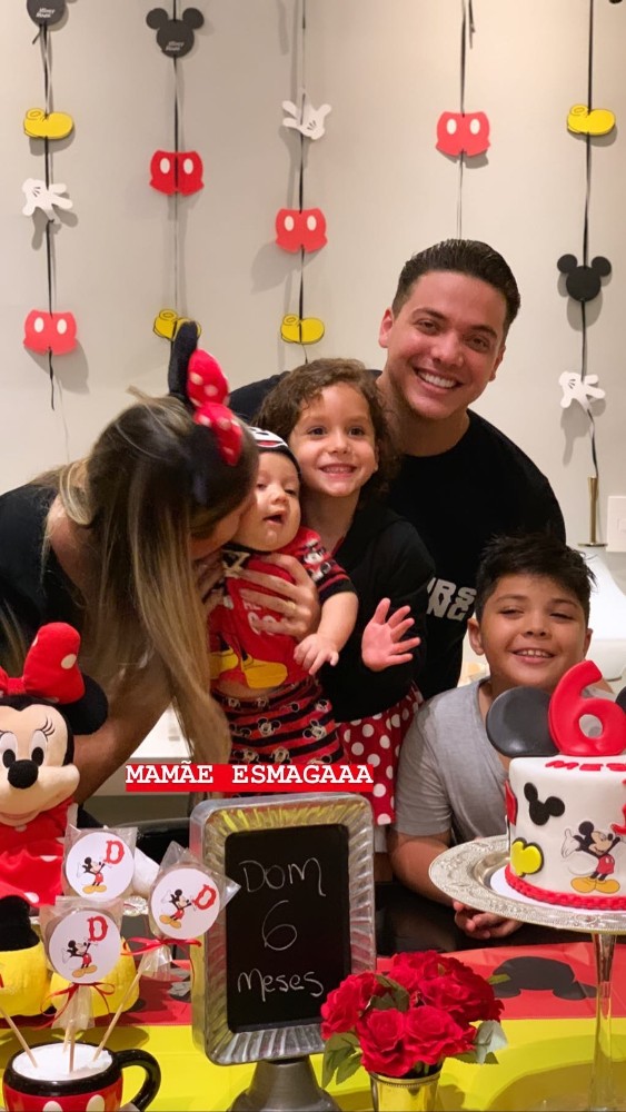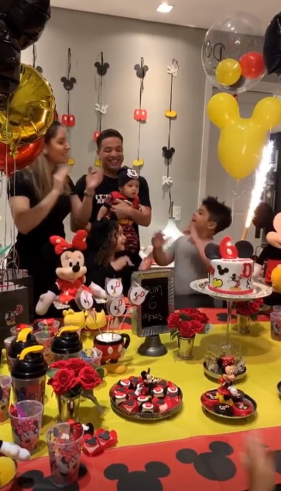 Wesley Safadão e Thyane Dantas comemoraram os seis meses do filho caçula, Dom, com uma festa inspirada mo Mickey. A festa, que foi realizada na noite da segunda-feira (18), aconteceu na casa do cantor, em Fortaleza. Os irmãos de Dom, Yhudy e Ysis, também estavam na festa e fizeram um click super em família.